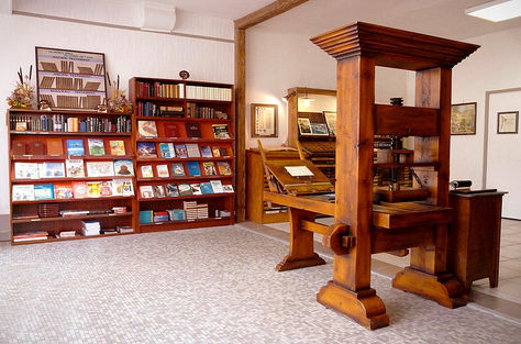 Démonstration d’imprimerie à l’ancienne sur une copie de la presse de Gutenberg.